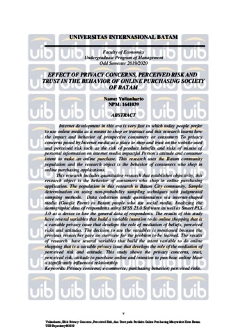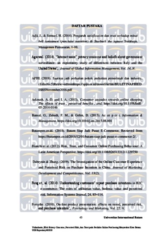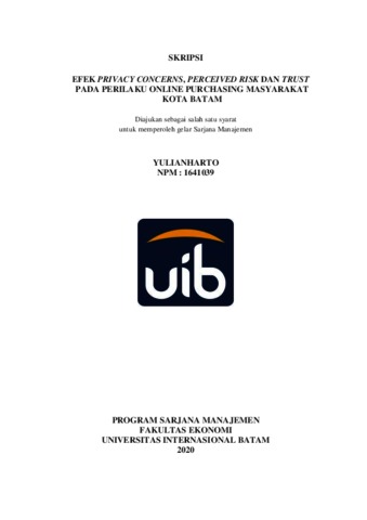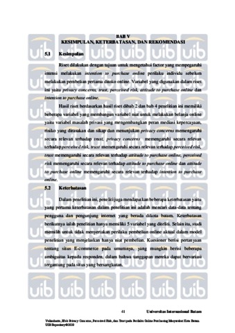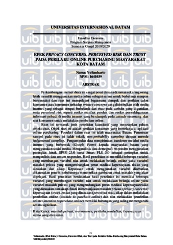 Yulianharto, Yulianharto (2020) Efek Privacy Concerns, Perceived Risk dan Trust pada Perilaku Online Purcashing Masyarakat Kota Batam. Undergraduate thesis, Universitas Internasional Batam.