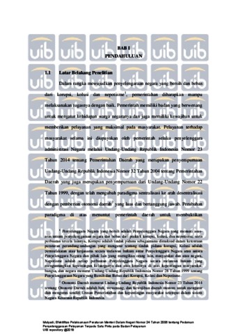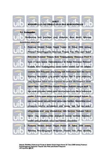 Mulyadi, Mulyadi (2018) Efektivitas Peraturan Menteri dalam Negeri Nomor 24 Tahun 2006 tentang Pedoman Penyelenggaraan Pelayanan Terpadu Satu Pintu pada Badan Pelayanan Perizinan Terpadu Kota Tanjungpinang. Master thesis, Universitas Internasional Batam.