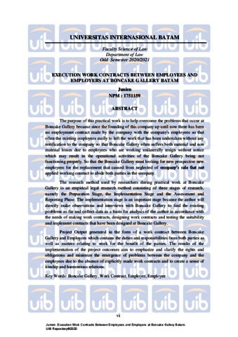 Junien, Junien (2020) Execution Work Contract Between Employees and Employers at Boncake Gallery. Undergraduate thesis, Universitas Internasional Batam.