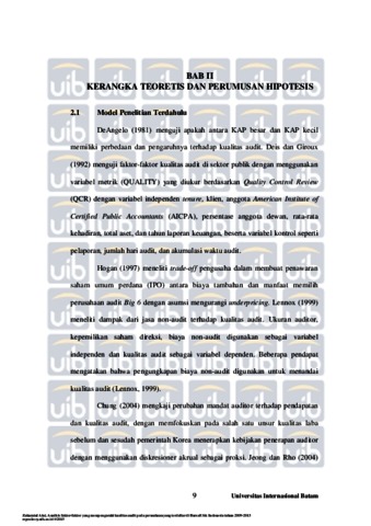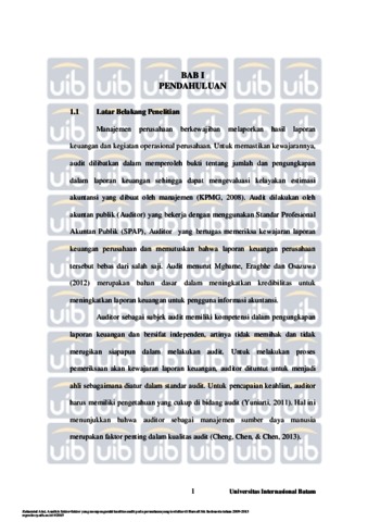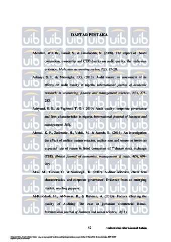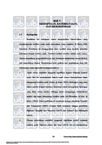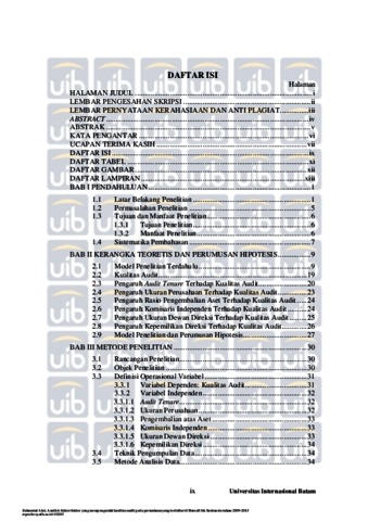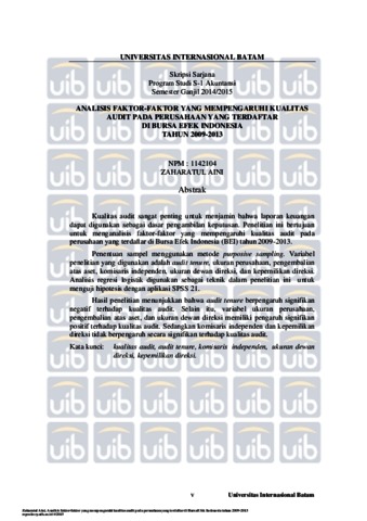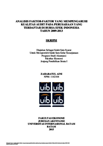 Aini, Zaharatul (2015) Analisis Faktor-Faktor yang Mempengaruhi Kualitas Audit pada Perusahaan yang Terdaftar di Bursa Efek Indonesia Tahun 2009-2013. Undergraduate thesis, Universitas Internasional Batam.
