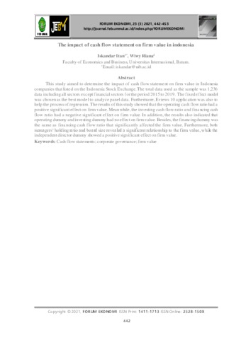 Itan, Iskandar The impact of cash flow statement on firm value in indonesia. FORUM EKONOMI: Jurnal Ekonomi, Manajemen dan Akuntansi.