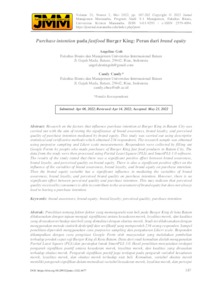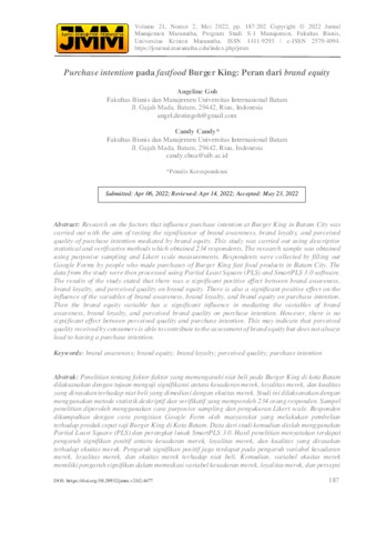 Candy, Candy Purchase intention in Burger King fast food: the role of brand equity. Jurnal Manajemen Maranatha.