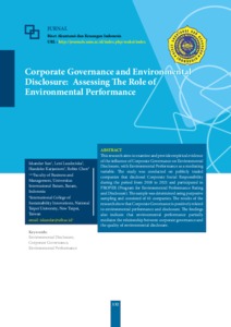 Itan, Iskandar Corporate Governance and Environmental Disclosure: Assessing The Role of Environmental Performance. Riset Akuntansi dan Keuangan Indonesia.