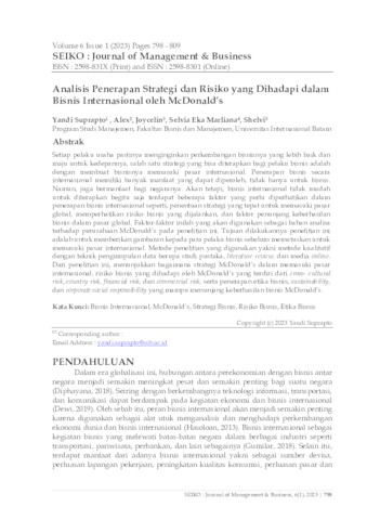 Suprapto, Yandi Analisis Penerapan Strategi dan Risiko yang Dihadapi dalam Bisnis Internasional oleh McDonald’s. SEIKO: Journal of Mangement & Business.