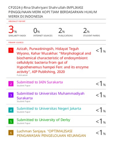 Rina Shahriyani, Shahrullah Turnitin - Implikasi Penggunaan Merk Kopi Tiam berdasarkan Hukum Merek di Indonesia. UIB.