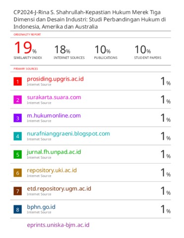 Rina Shahriyani, Shahrullah Turnitin - Kepastian Hukum Merek Tiga Dimensi dan Desain Industri: Studi Perbandingan Hukum di Indonesia, Amerika dan Australia. UIB.