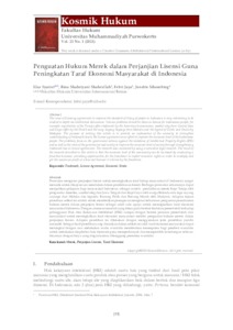 Rina Shahriyani, Shahrullah Penguatan Hukum Merek dalam Perjanjian Lisensi Guna Peningkatan Taraf Ekonomi Masyarakat di Indonesia. Kosmik Hukum.