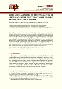 Rina Shahriyani, Shahrullah Socio-Legal Analysis of The Utilization of Letter of Credit in International Business Transaction in Batam City. Jurnal Legalitas.