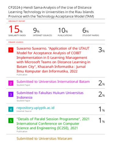 Sama, Hendi Turnitin Analysis of the Use of Distance Learning Technology. UIB.