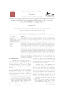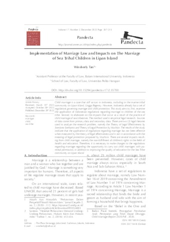Tan, Winsherly Implementation of Marriage Law and Impacts on The Marriage of Sea Tribal Children in Lipan Island. PANDECTA: Jurnal Penelitian Ilmu Hukum.