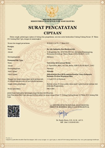 Lily Sudhartio (2021) Makalah Industrialisasi Desa di Kecamatan Kundur Utara, Kabupaten Karimun, Provinsi Kepulauan Riau. EC00202116178.